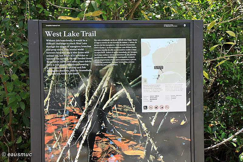 Die Länge des Trails beträgt etwa 0,5 Meilen (800 Meter). Anfangs wachsen beidseits des Weges Buttoonwoods (Canocarpus erectus - Strauchartig oder als Baum wachsend).