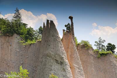 Die Erdpyramiden von Segonzano befinden sich in der Provinz Trentino, ca. 23 Kilometer nordöstlich von Trient. Die Erdpyramiden verteilen sich auf drei Gruppen + einem einzeln stehenden Hoodoo.