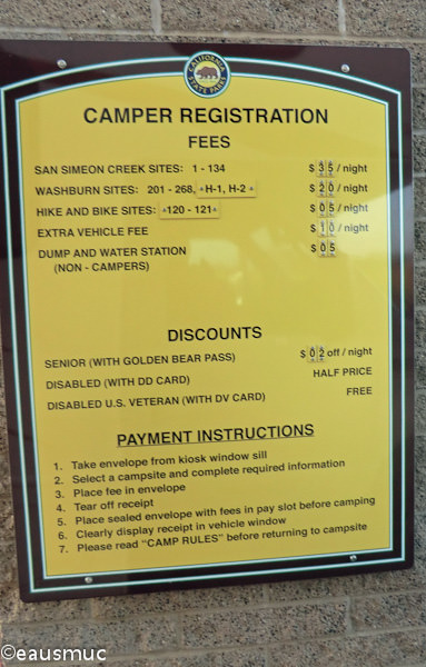 Der Übernachtungspreis beträgt $ 20. (Stand Mai 2012) Die max. Größe für Womo´s beträgt auf beiden Plätzen 35 Fuß.