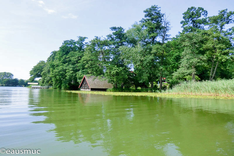 Der schmale und der breite Luzin werden von einem Damm getrennt, es besteht aber eine kleine Kanalverbindung. Eine Strömung konnte ich bei meinem Besuch nicht feststellen.