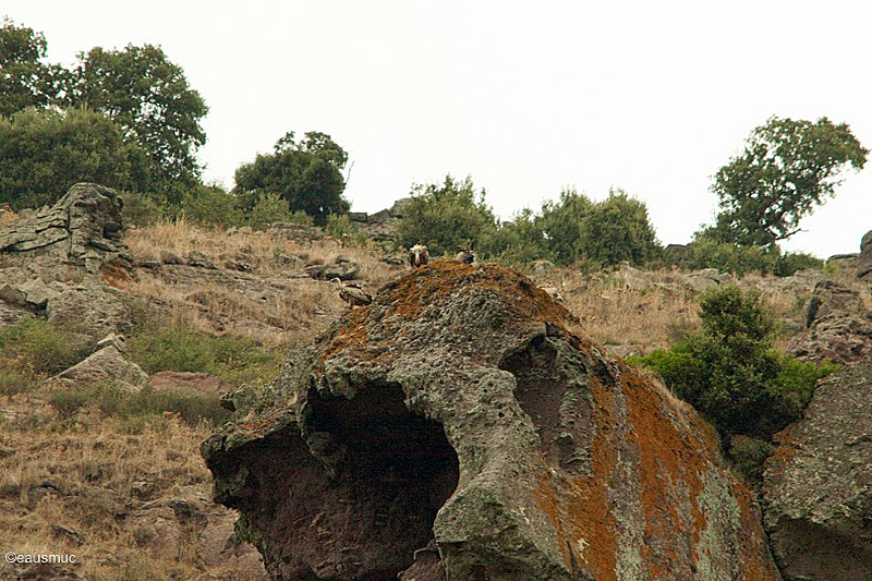 In einem Reiseführer habe ich gelesen, dass hier an diesem Küstenabschnitt die letzten Gänsegeier Sardiniens leben. Mit einem Auge auf die Straße und dem anderen in die Luft gerichtet, fahre ich diese tolle Strecke. Und tatsächlich, in Höhe des Monte Mannu sehe ich plötzlich große Vögel auf einem Felsen sitzen.