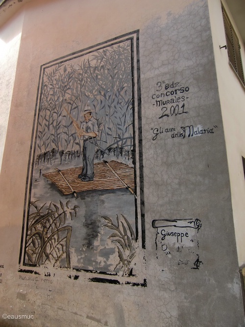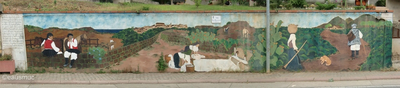 Über Bau fahre ich zurück auf die Hauptverbindungsstraße 126. Dieser folge ich ein paar Kilometer nach Süden. Im Dörfchen Fluminimaggiore sehe ich kurz vor dem Ortsausgang plötzlich diese herrliche Malerei auf der rechten Seite.