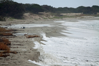 Am späten Nachmittag kommt eine Gruppe Mountainbiker vorbei. Patschnass fahren sie über den Parkplatz Richtung Strand. Dort steigen sie ab und schieben ihre Radln durch den tiefen Sand in Richtung auf das Naturschutzgebiet. Keine Ahnung wo die hin wollen. Der Abend ist unangenehm, raus gehen geht gar nicht, es regnet ununterbrochen.