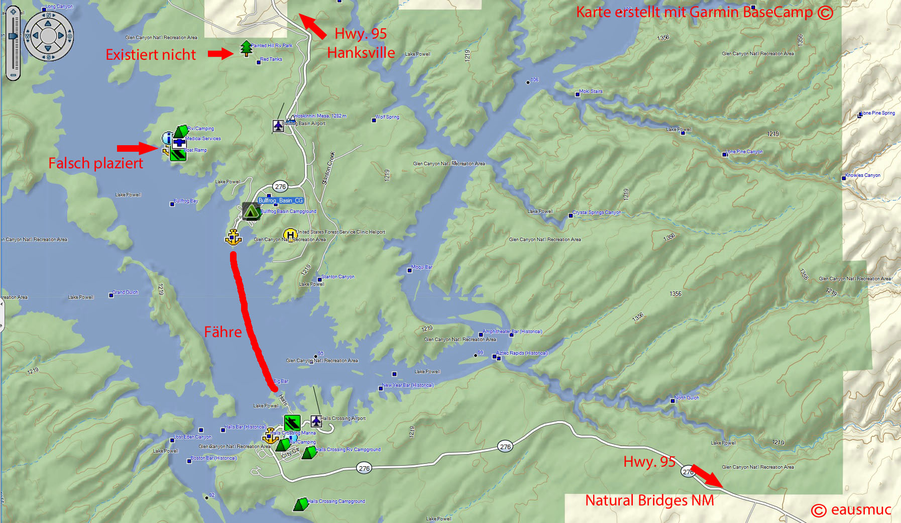Zwischen Bullfrog und Halls Crossing verkehrt eine Fähre, d.h. man sitzt bei diesem Abstecher nicht in einer Sackgasse.