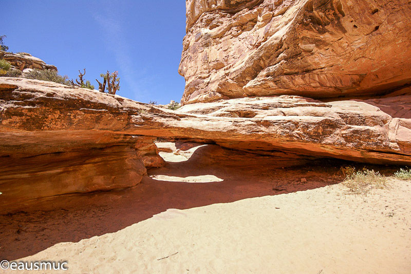 Der Trail macht einen Knick nach Norden und kurz darauf wieder nach Westen. Über einen kleinen Hügel gelangt man schließlich in einen Wash. Nach weiteren 0,1 Meilen erreicht man eine Mini Bridge.