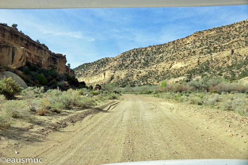 Knapp außerhalb von Escalante endet der Teer, die restlichen 3,4 Meilen auf der unpaved Smokey Mountain Rd. sind auch mit einem Womo problemlos zu befahren.