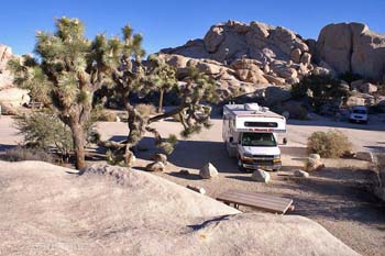 Eigentlich hatte ich gehofft, dass am frühen Morgen noch wenig los wäre im Joshua Tree NP, aber dem ist nicht so. Es sind jedoch keine Touri´s sondern Baumaschinen und LKW. Nach einer langsamen Fahrt tiefer in den Park hinein und etlichen Fotostopps komme ich dann auch an der Baustelle an, die laut Hinweisschild eigentlich schon wieder aufgehoben sein sollte.