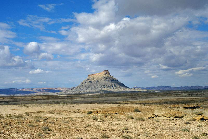 Weiter geht es auf der 24, erst Richtung Caineville und dann nach Hanksville. Die Landschaft verändert sich rapide. Es wird Karg, vereinzelte Tafelberge sind in der Ferne zu erkennen.