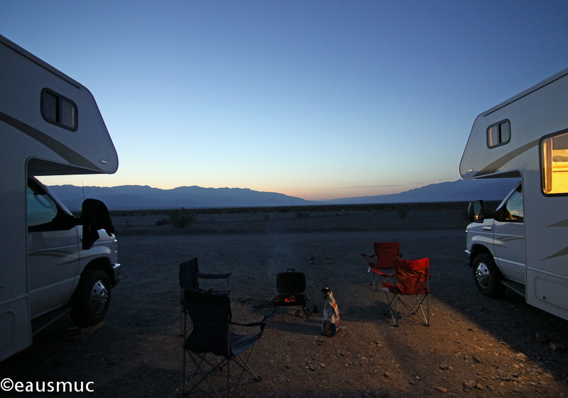 Jetzt ist es glücklicherweise nicht mehr weit. Mir reicht es, ich bin völlig fertig von der Fahrerei. Kurz vor Sonnenuntergang erreichen wir Stovepipe Wells und checken dort ein. Es herrscht Wohlfühltemperatur.