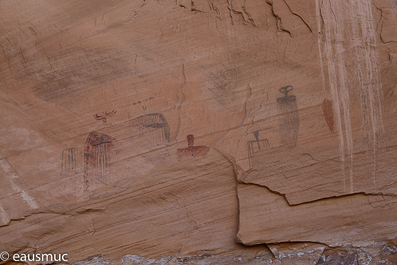 Zuerst geht es aber nach Süden, ich mache einen Abstecher zum Newspaper Rock. Der Umweg ist zwar weit, es rentiert sich aber. Den Arch, der gleich ums Eck sein soll finde ich nicht. Mit dem Womo ist das Parken hier nicht so einfach.