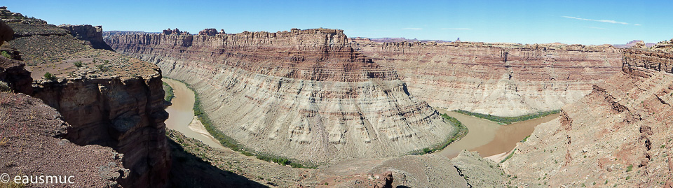 Die Aussicht ist sagenhaft, unten am Fluß kann man sogar Raftingboote erkennen. Nach einer ausgedehnten Pause mache ich mich auf den Rückweg. Dieser Trail lohnt sich nicht nur wegen der Aussicht über den Confluence, sondern auch wegen der fantastischen Landschaft. Ziemlich Müde und KO erreiche ich nach knapp 6 Stunden wieder das Wohnmobil.