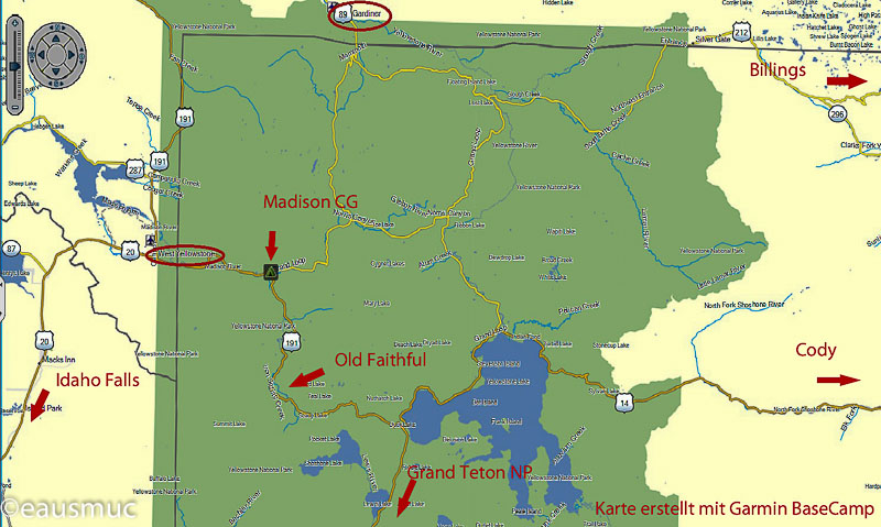 Dieser Platz ist strategisch sehr günstig gelegen. Von hier können sowohl der Nord- als auch der Südloop gut gefahren werden. Wer Sprit benötigt, hat nicht zu weit nach West Yellowstone. Eine Reservierung kann ich aus eigenen Erfahrungen nur empfehlen.